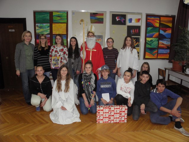 Prigodni program povodom svetog Nikole za učenike nižih razreda održan je 7. prosinca 2015. u holu naše škole. Program su organizirale Katarina Klarić (vjeroučiteljica) i Ivana Buconjić (učiteljica 3.d).